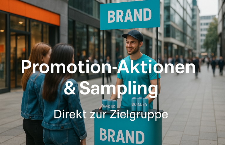 Mit kreativen Promotion-Konzepten bringen wir Marken direkt zu den Menschen – zielgruppengenau, aufmerksamkeitsstark und messbar. Von Street-Promotions bis Sampling-Kampagnen organisieren wir alles inklusive Personal, Logistik und Reporting.